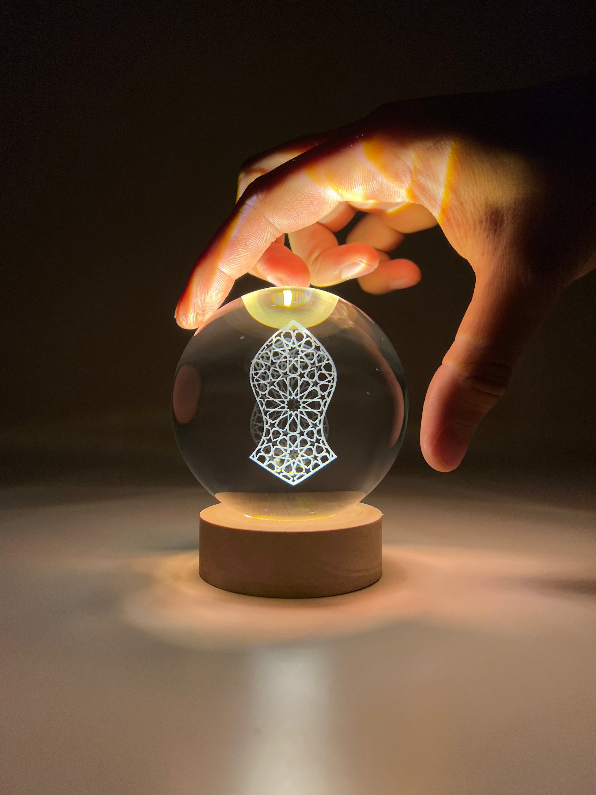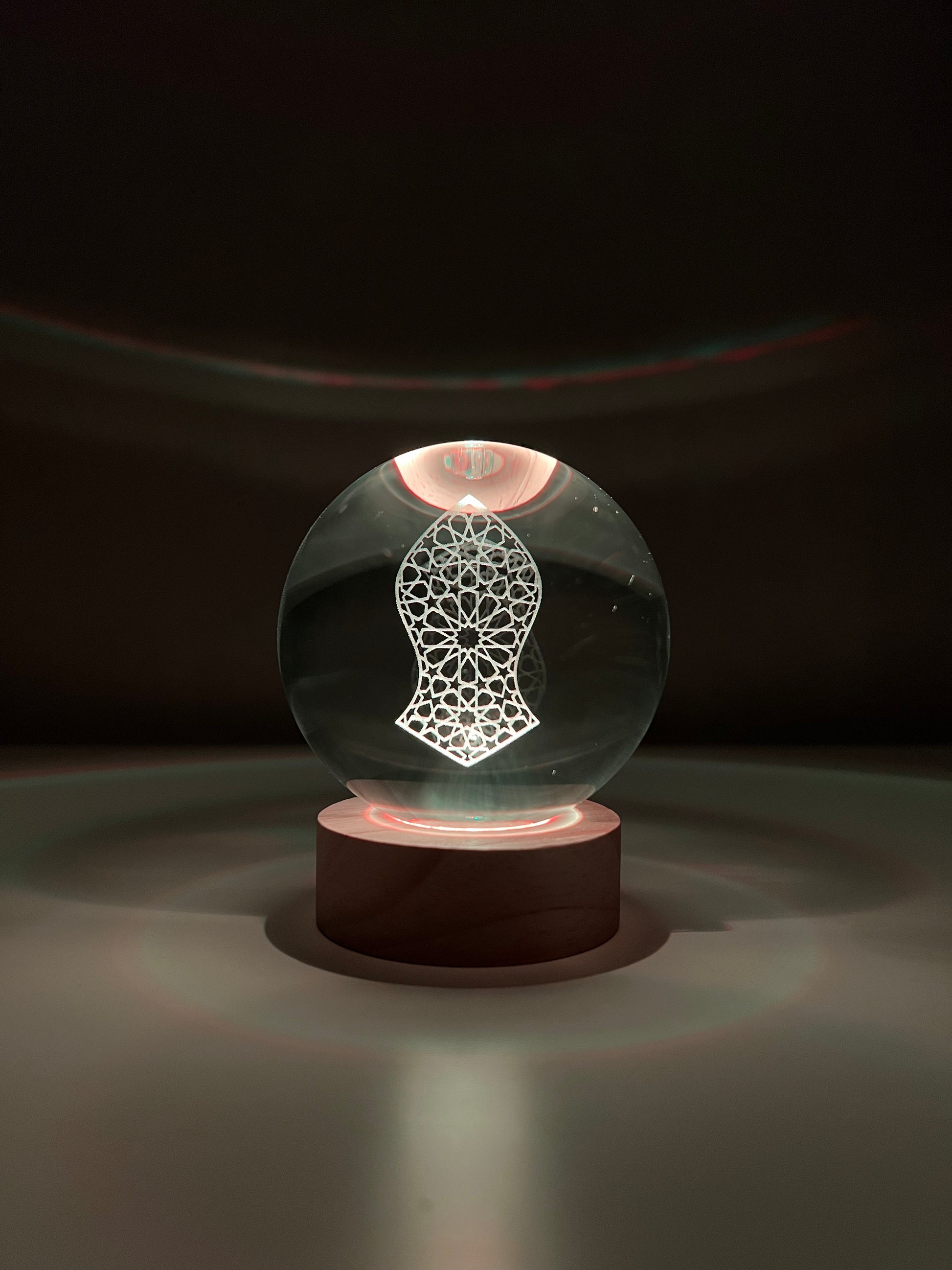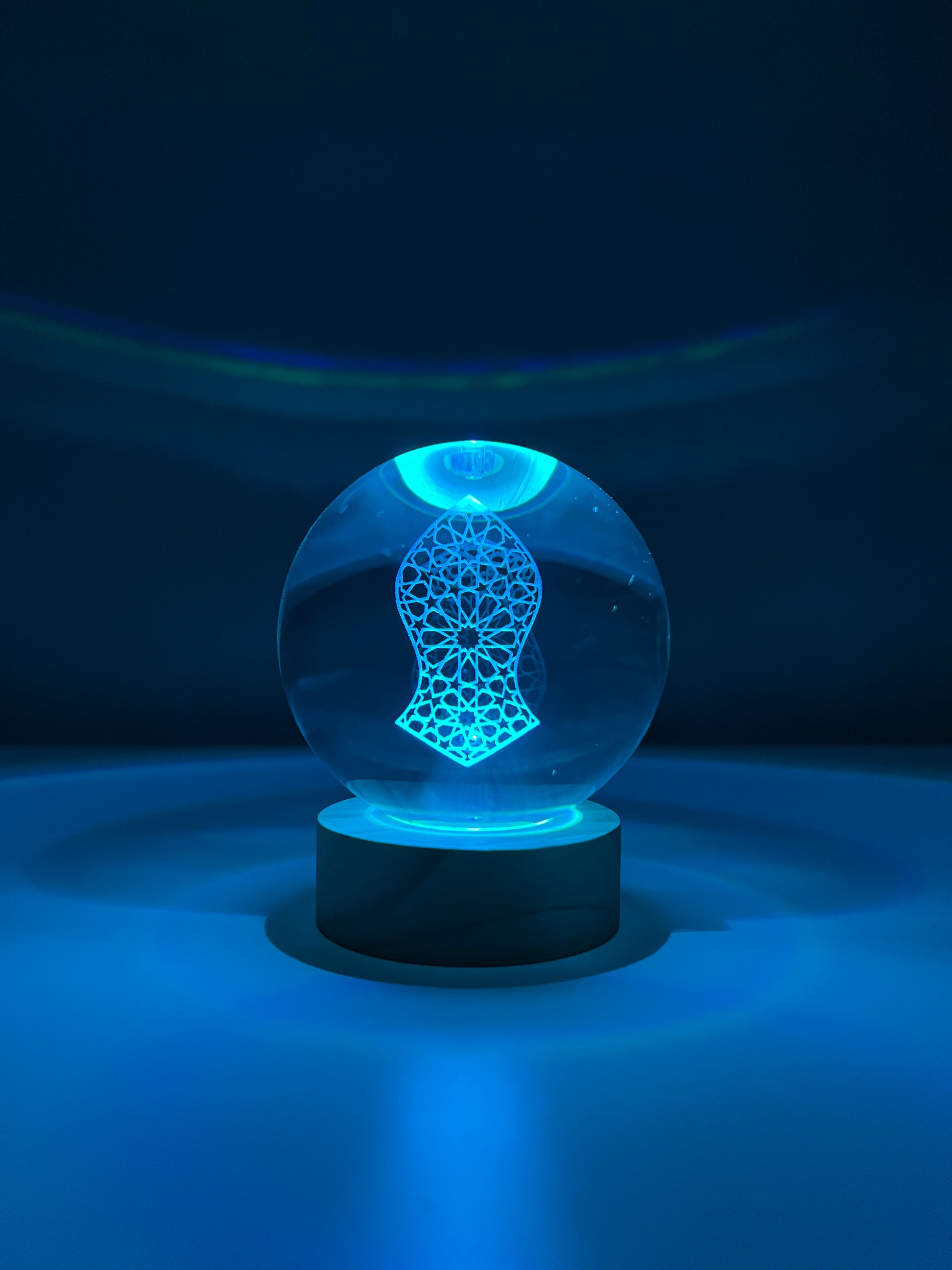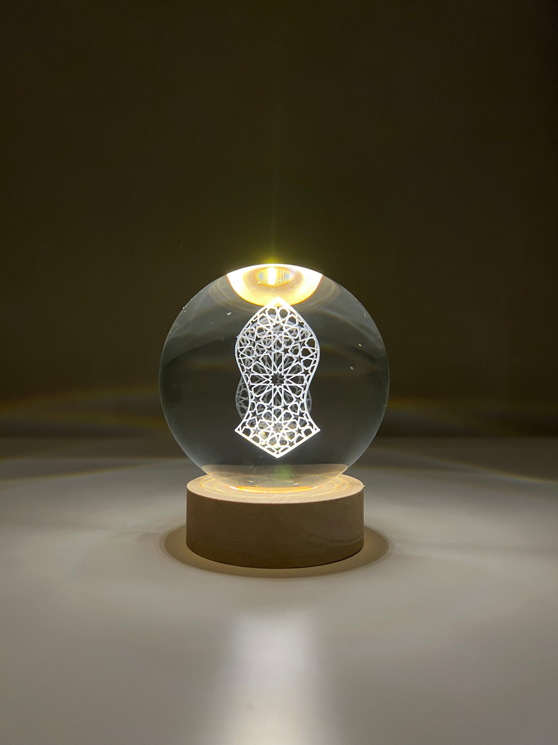 Experience the beauty and reverence of the Nalayn Sphere, inspired by the blessed sandals of Prophet Muhammad ﷺ. Crafted from premium K9 crystal, the 8 cm sphere captures the sacred symbol with exquisite precision — a timeless reminder of love and devotion.