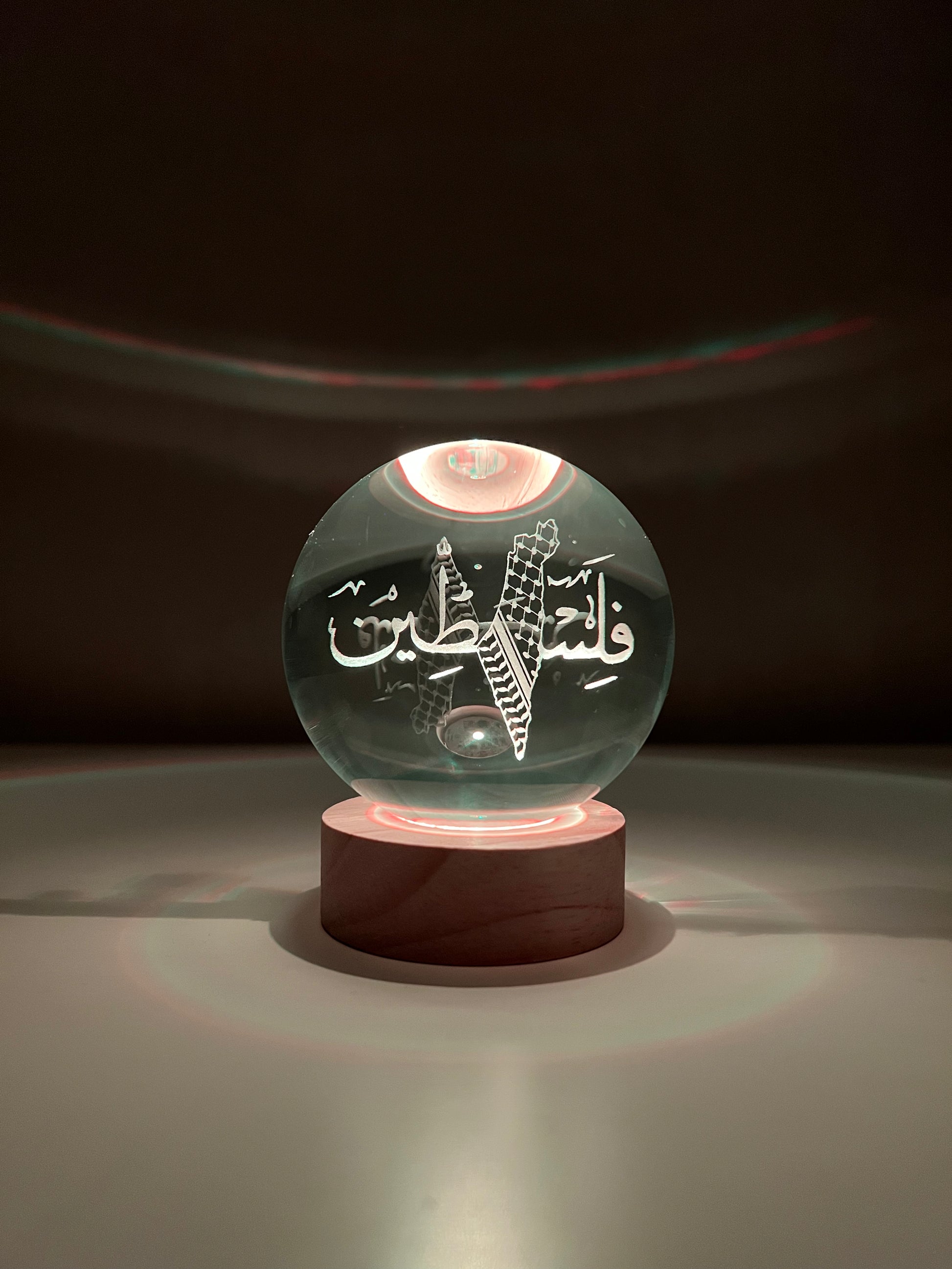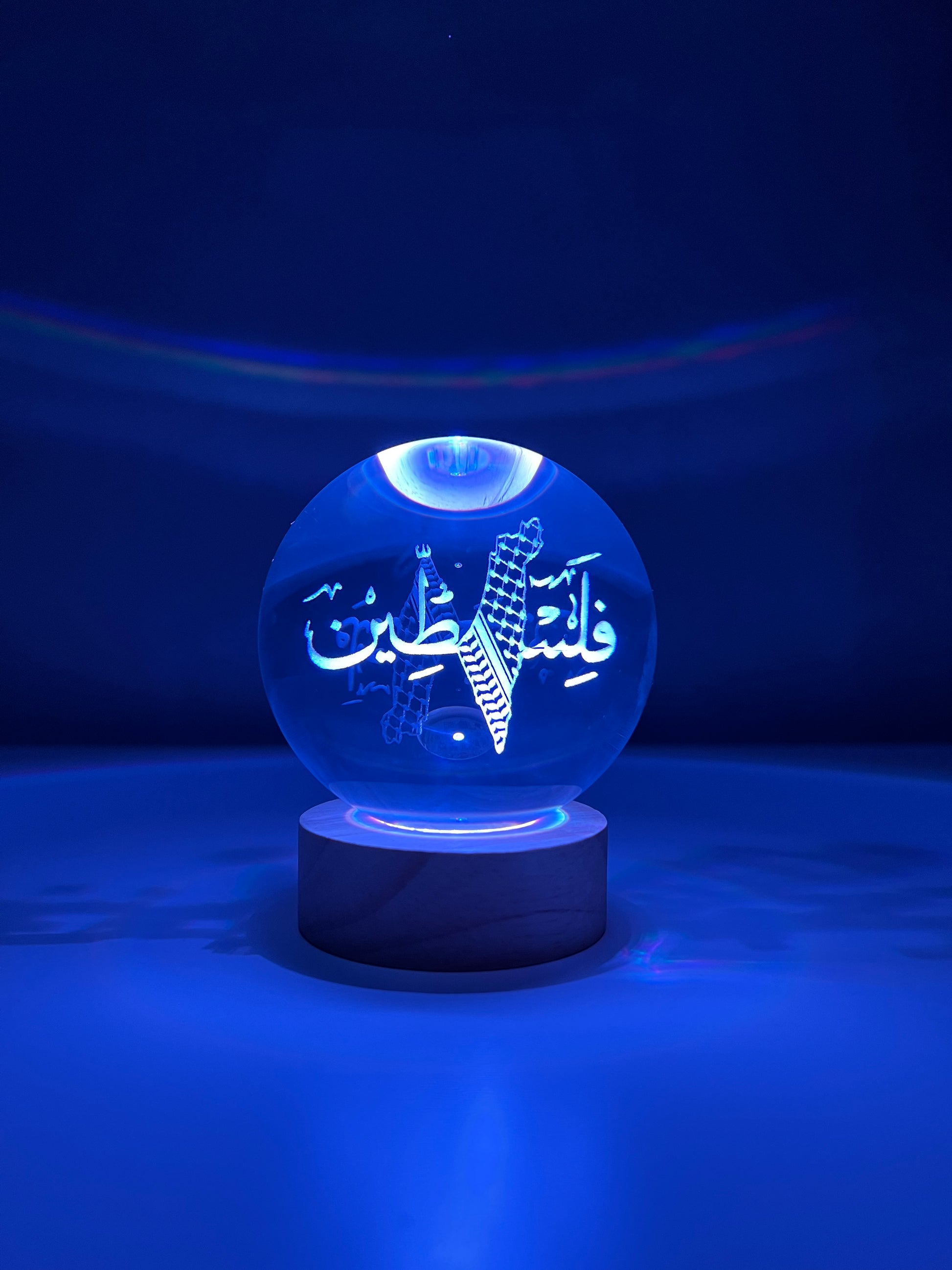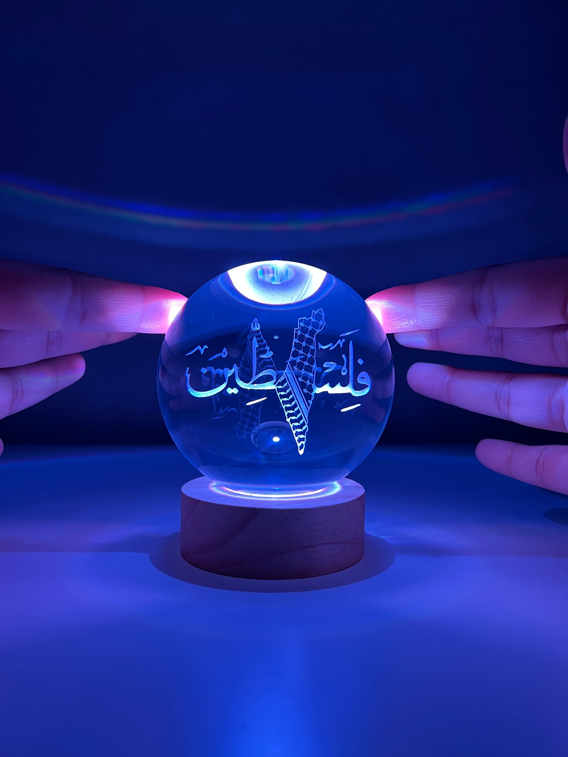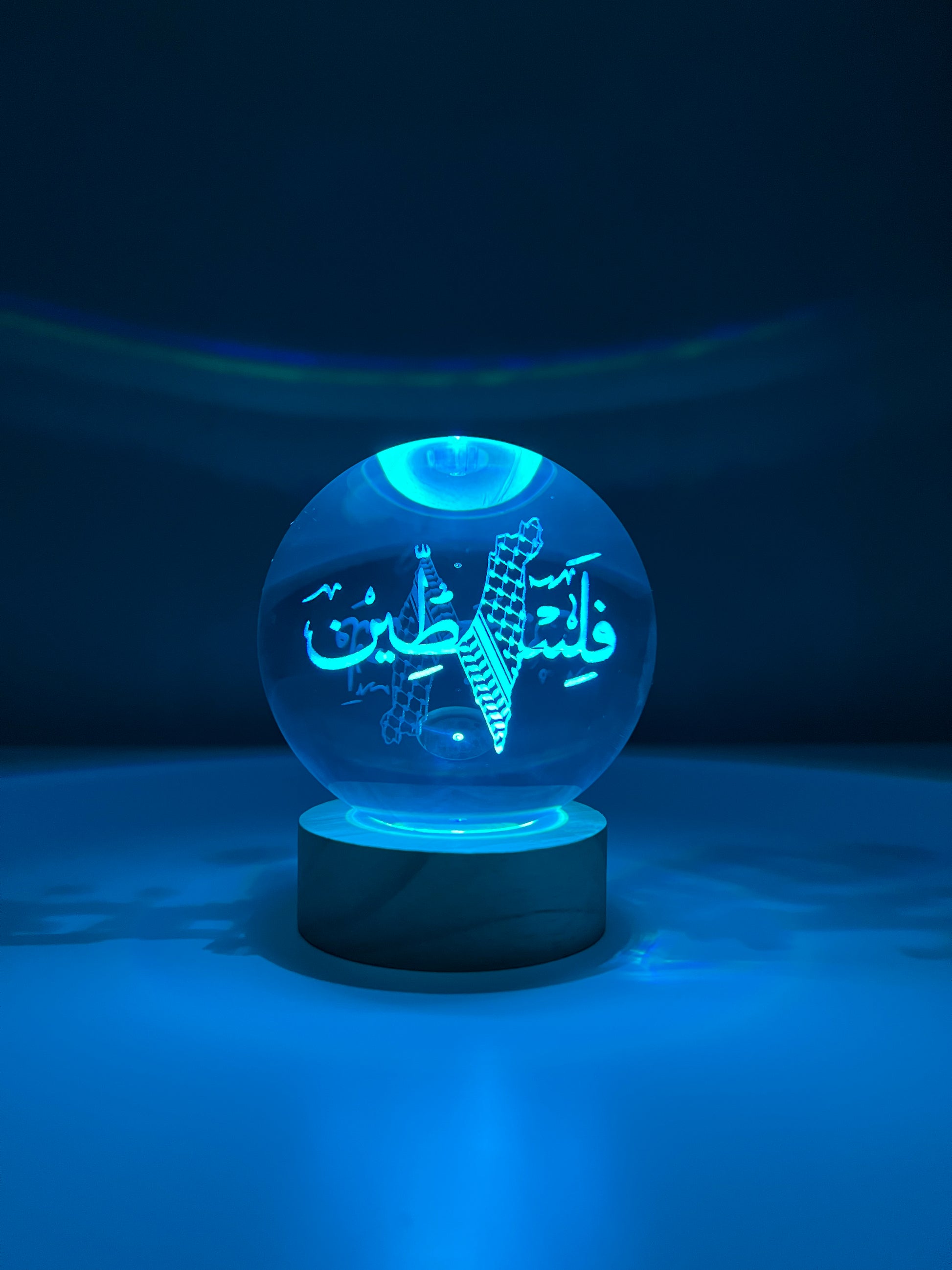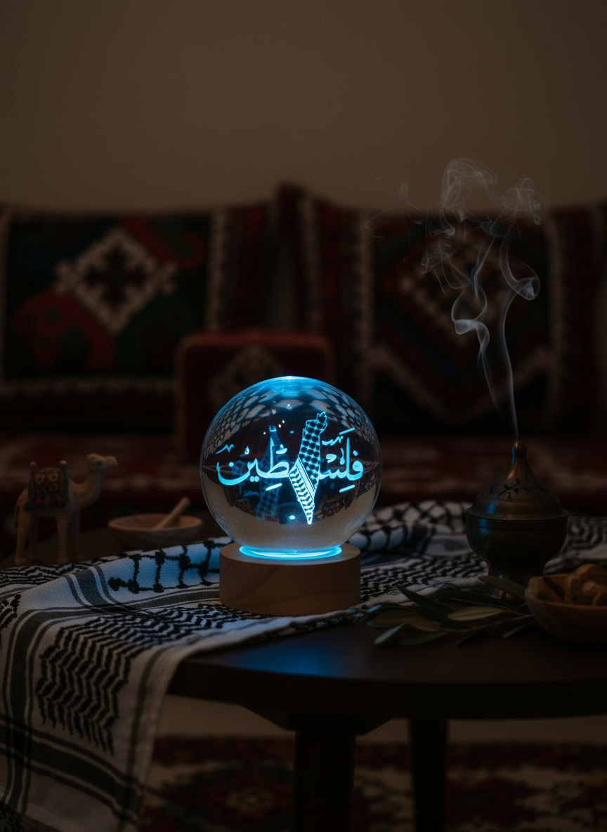 Made from premium K9 crystal, this 8 cm sphere holds the engraved map of Palestine — a glowing symbol of unity, pride, and unbreakable spirit. Every angle reflects the heritage, strength, and identity of a land that continues to inspire the world.